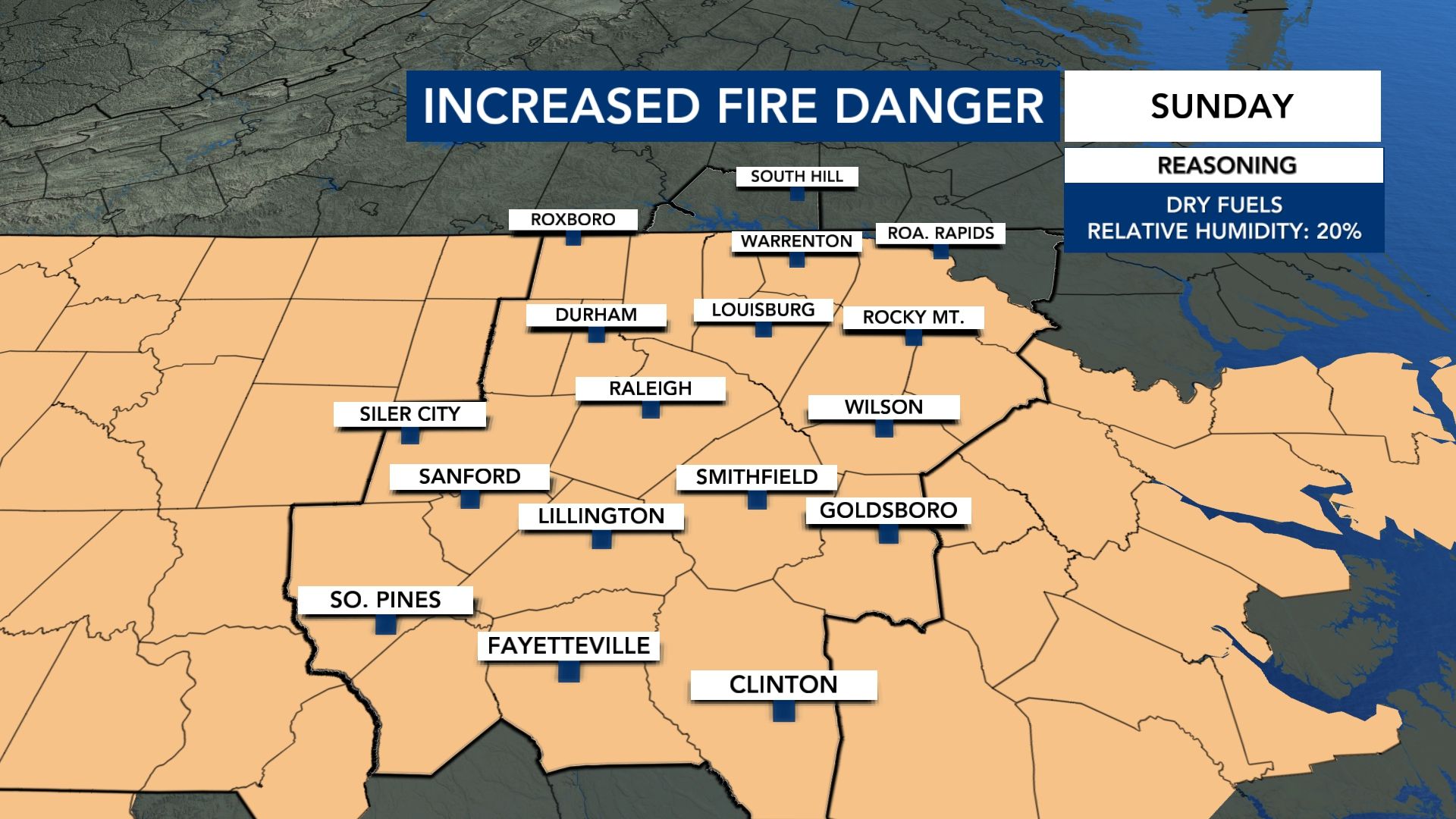 El sábado 28 de marzo entró en vigor una prohibición estatal de quemas que se mantendrá hasta nuevo aviso. El Servicio Forestal de Carolina del Norte emitió la prohibición debido a las peligrosas condiciones de riesgo de incendios forestales.