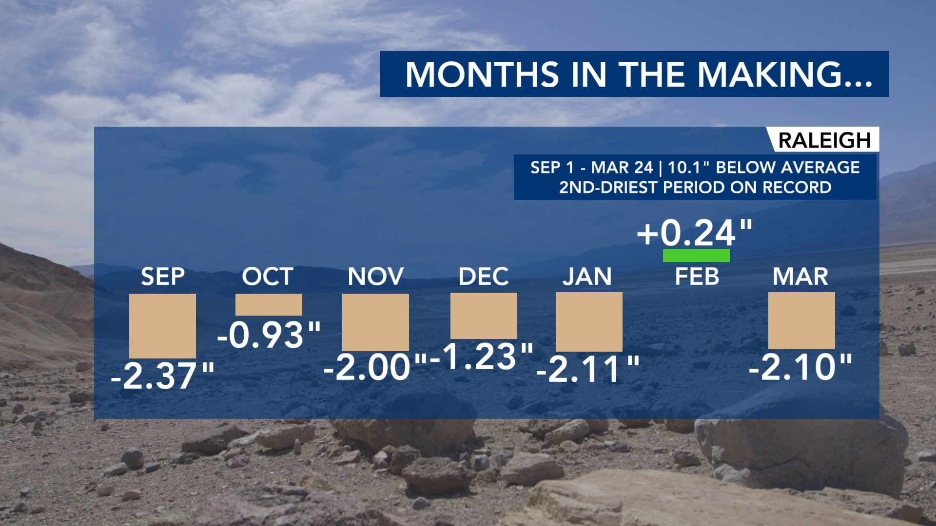 Según el meteorólogo de WRAL, Chris Michaels, desde el 1 de septiembre, las precipitaciones han estado más de 10 pulgadas por debajo del promedio.