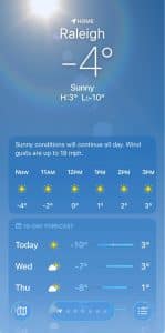 Este martes Carolina del Norte inició el día con mejoras en el tiempo. Las calles están más despejadas y queda poca nieve en algunos porches de viviendas.