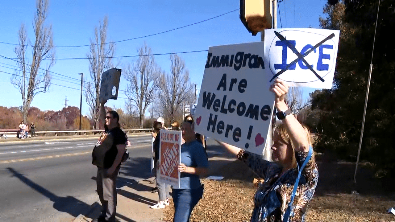 10:55 a. m. – En Charlotte, hay manifestantes protestando a lo largo de las autopistas , mientras los autos que pasan tocan la bocina. Algunos portan banderas estadounidenses, otros llevan carteles que denuncian al ICE.