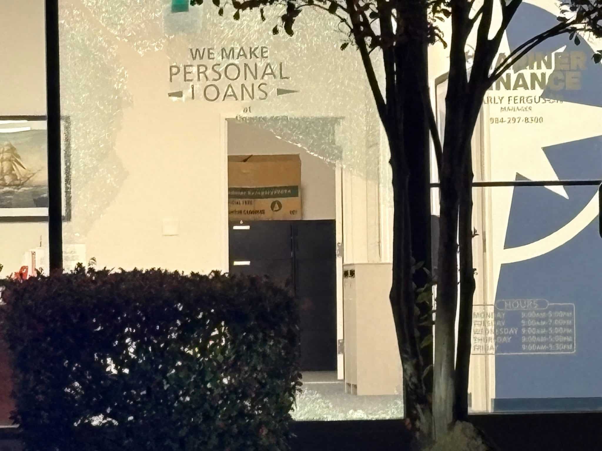 Disparos destrozan ventanas en tienda Spectrum y negocio financiero cerca de Triangle Town Center en Raleigh