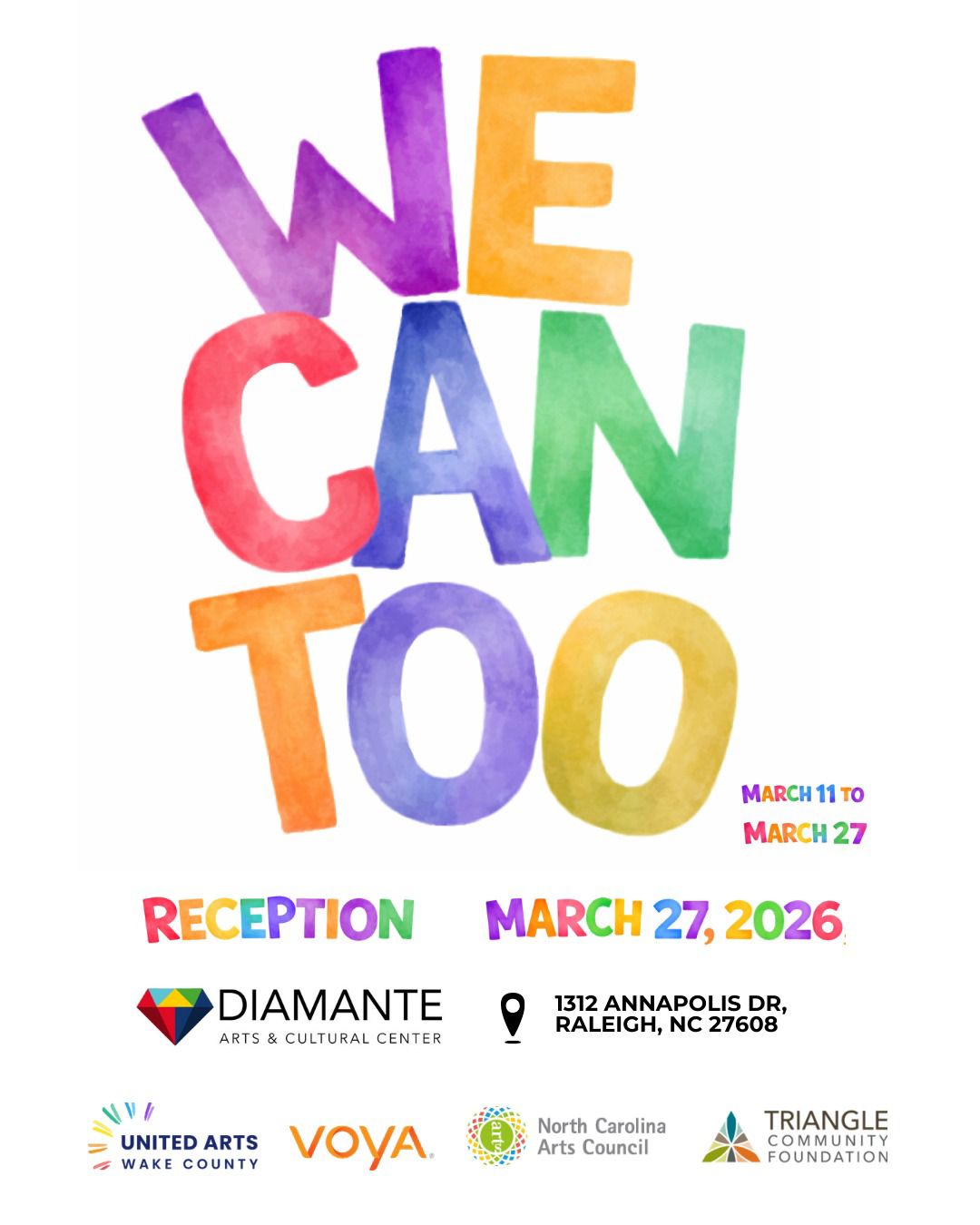 Raleigh, NC, 25 de marzo de 2026- El Centro de Arte y Cultura Diamante presenta la exposición “We Can Too” (Nosotros También Podemos), una muestra que celebra el talento y la creatividad de estudiantes con discapacidades intelectuales del Wake County Public School System (WCPSS).