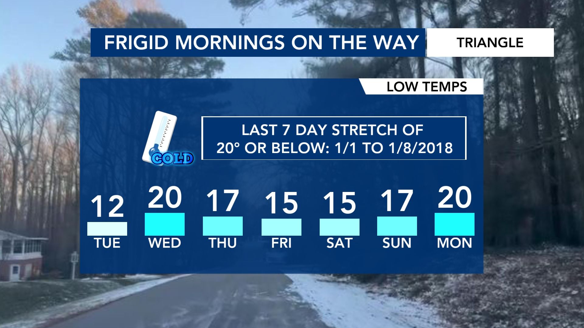 “Cuando lleguemos a las 8 o 9 de la mañana deberíamos empezar a calentarnos”, dijo la meteoróloga de WRAL, Elizabeth Gardner.