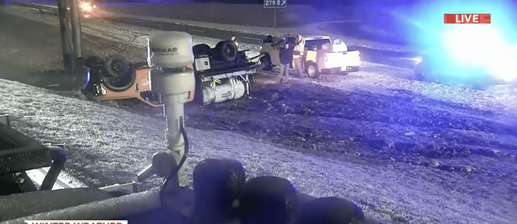 5 a. m.: Aunque los equipos han estado trabajando para despejar las principales rutas, como las interestatales y las autopistas, estas vías también permanecen resbaladizas. WRAL News recibió un informe de un camión de salmuera volcado en la Interestatal 40 Este en Durham. Se desconoce si hubo heridos.