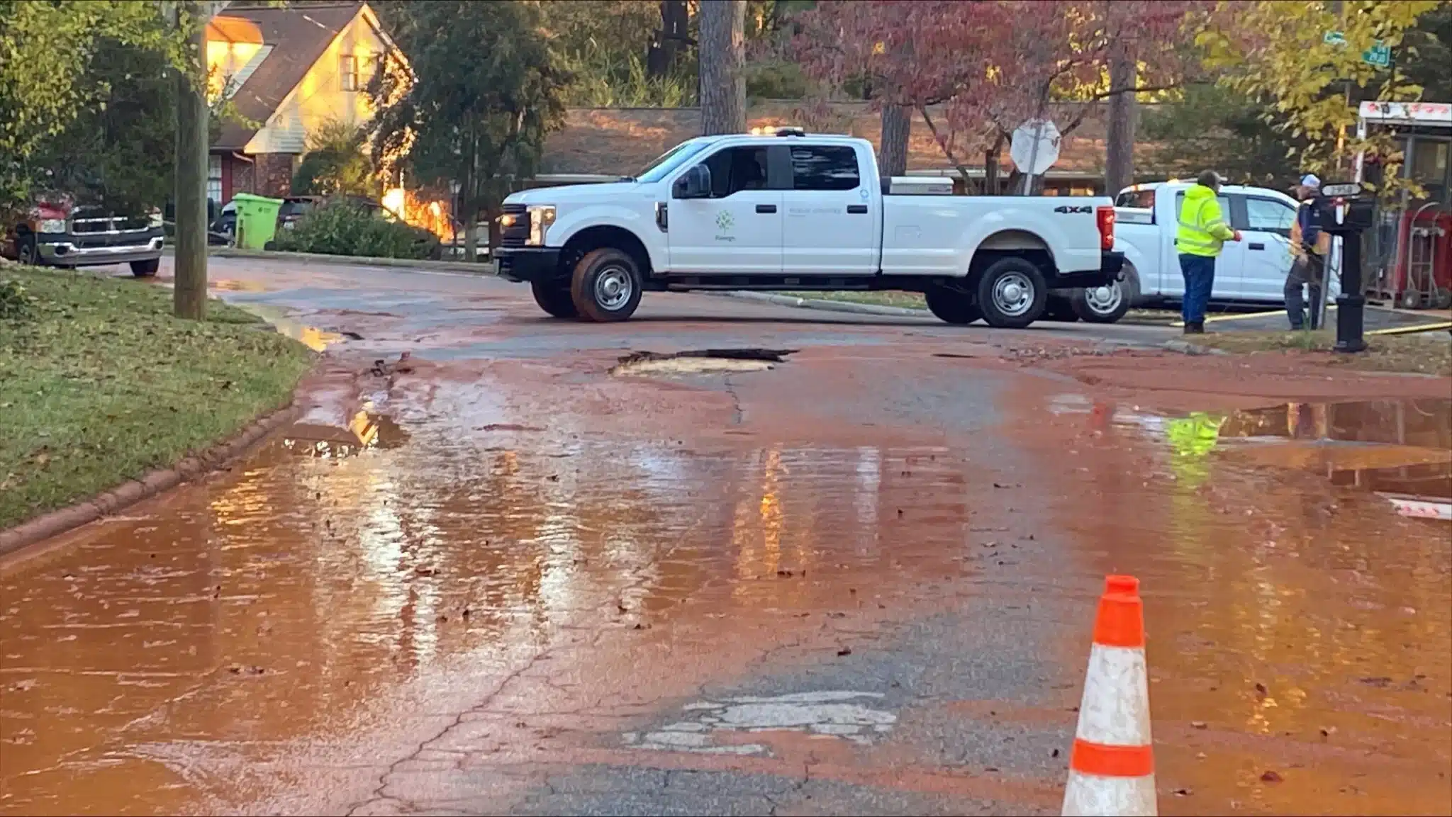 Según la ciudad de Raleigh, la rotura de la tubería principal de agua se produjo justo antes de las 7 de la mañana en Ward Road y Glenridge Drive.