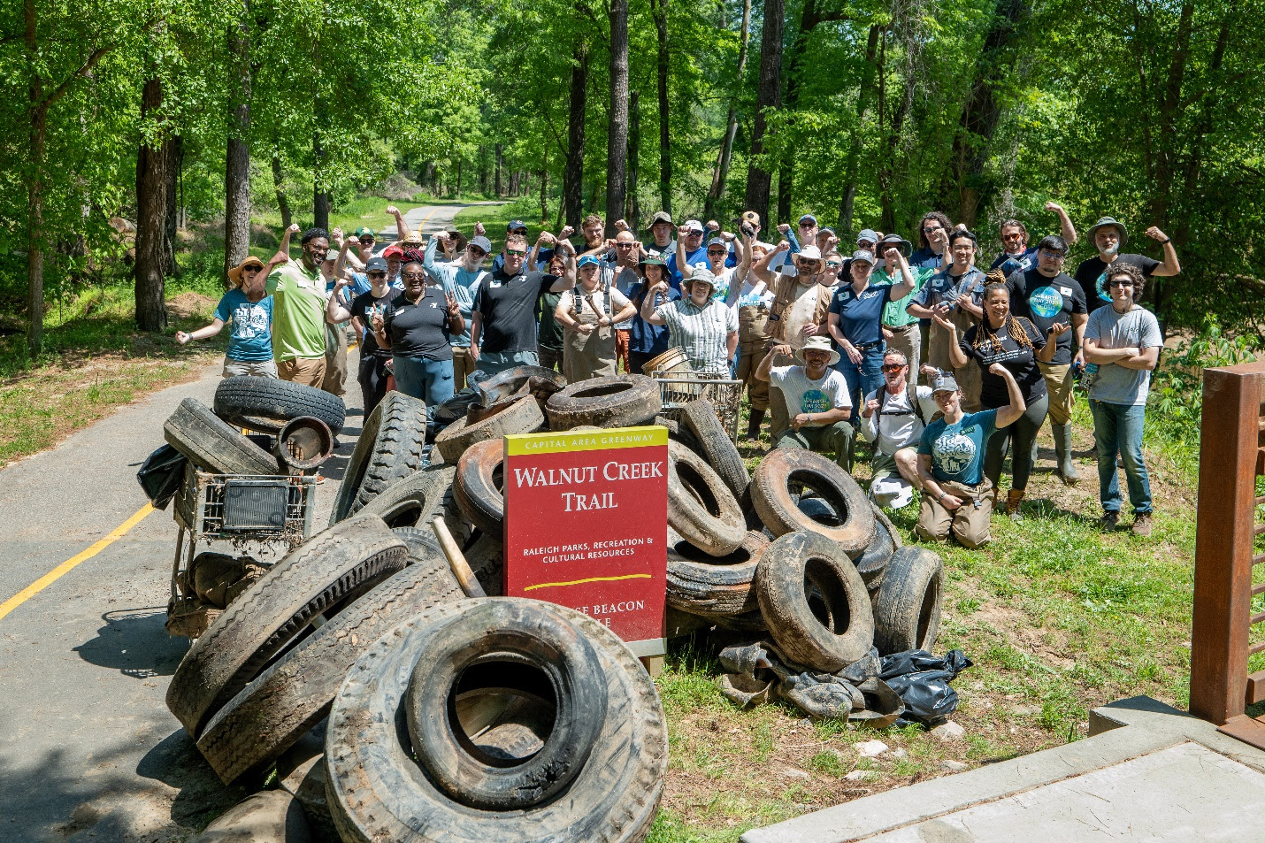 El año pasado, los voluntarios de Big Sweep demostraron el poder de la acción comunitaria. En 2025, 1321 voluntarios participaron en 46 eventos en todo el condado de Wake, incluyendo 12 limpiezas de embarcaciones, donando 4006 horas por un valor de $134,160.90. Los voluntarios retiraron 21,900 kg de basura, incluyendo 6,100 kg de materiales reciclables y 433 neumáticos.